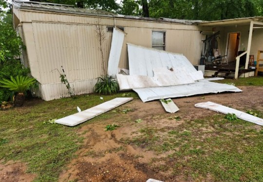Just north of Flomaton, wind ripped the roof off an older mobile on Pecan Grove Lane (above). The occupants were not injured.