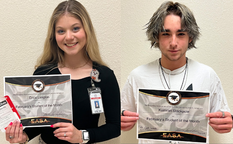 Tate High School recently named their students of the month for February. They are Erica Langton and Kamran Stackpole. Photo for NorthEscambia.com, click to enlarge.