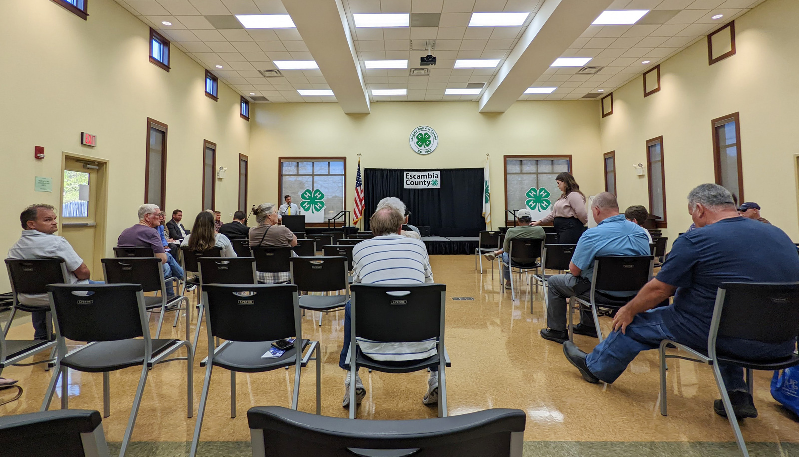 Pictured. Escambia County District 5 Commissioner Steven Barry during a 2022 town hall meeting at the Langley Bell 4-H Center in Cantonment. NorthEscambia.com photos, click to enlarge.