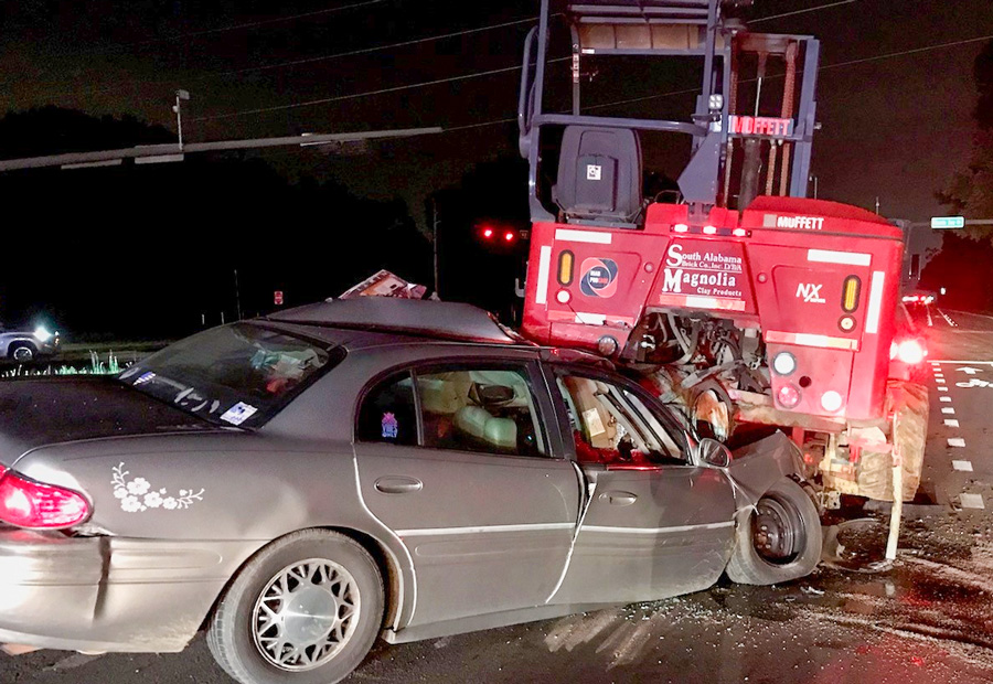The 42-year old woman hit a semi pulling a flatbed trailer and attached forklift about 5 a.m. on Highway 29 at Morris Avenue, according to the Florida Highway Patrol.