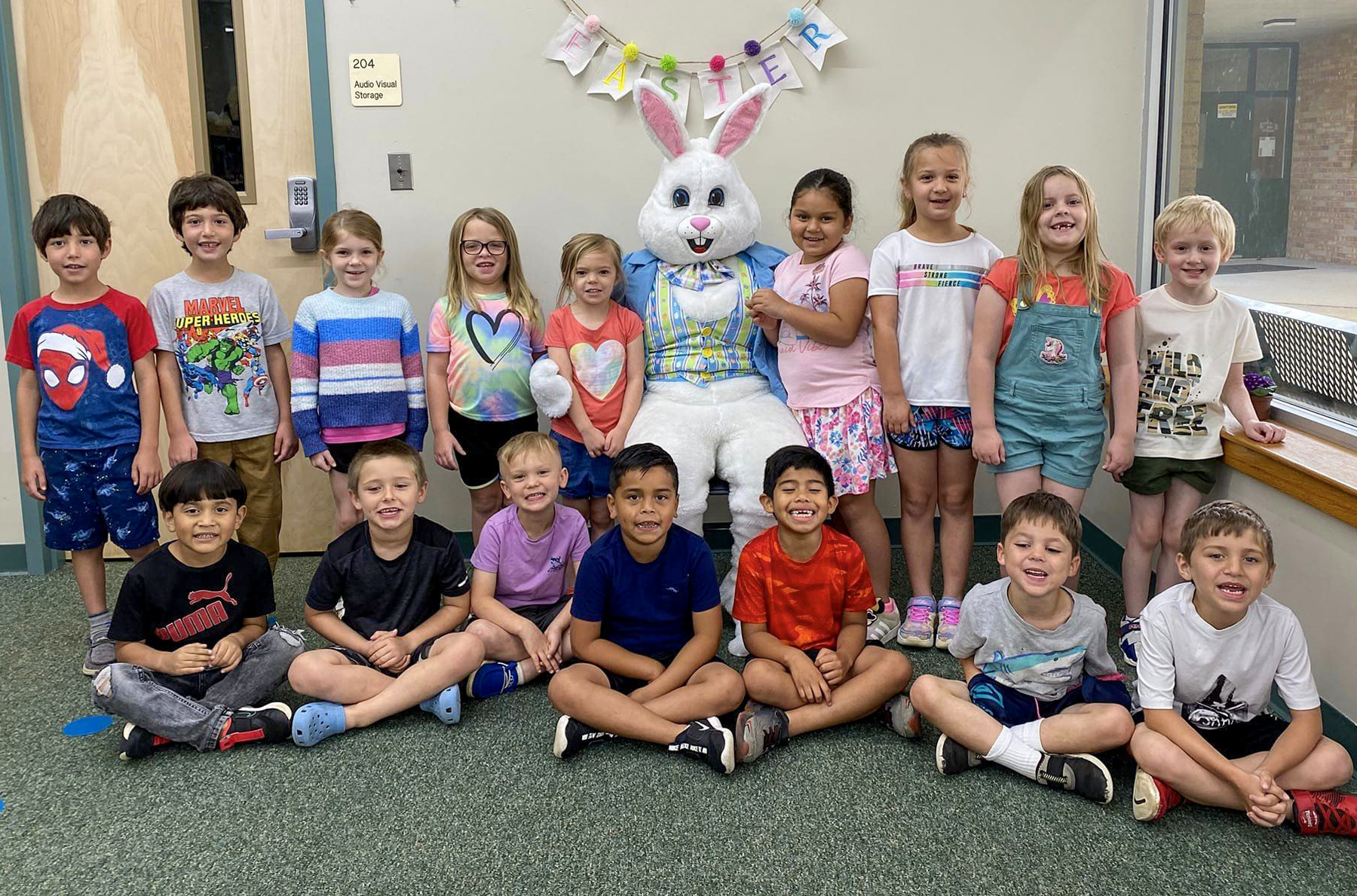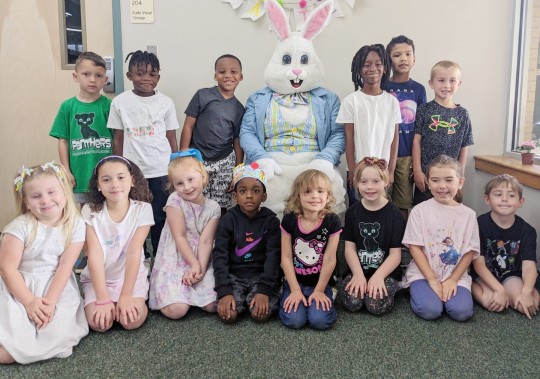 Kindergarten students at Pine Meadow Elementary School had a visit from the Easter Bunny last week, an egg hunt, a jelly bean sorting activity, and more.