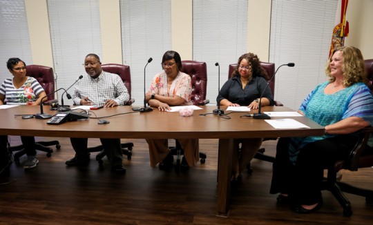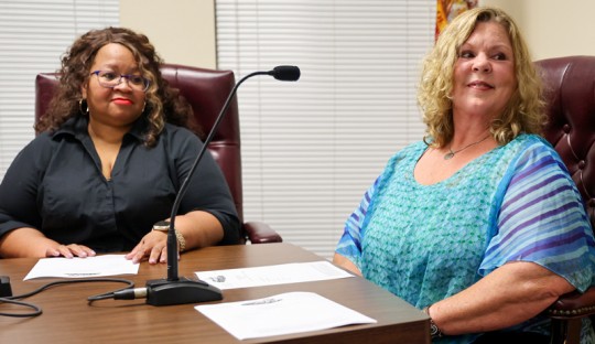 Pictured: Shelisa McCall (black dress) and Alicia Johnson (light-colored blouse) were sworn in to the Century Town Council Friday evening. NorthEscambia.com photos, click to enlarge.