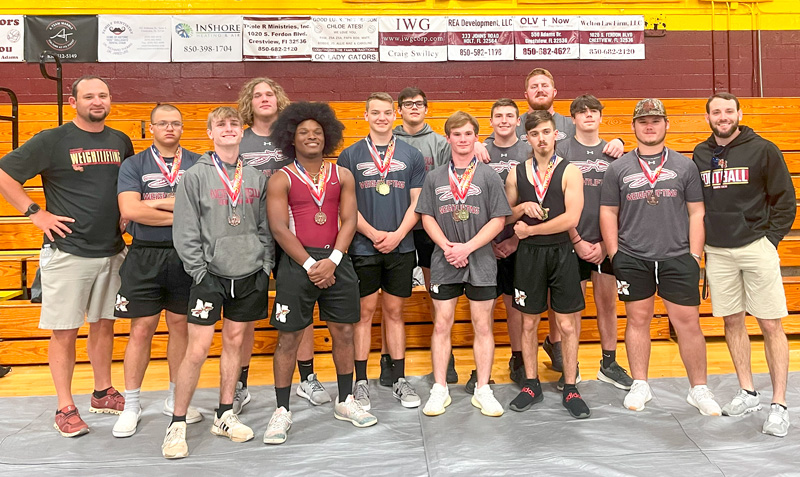 Pictured top: District medalists from the Northview High School boys weightlifting team. Pictured below: The complete team. Photos for NorthEsambia.com, click to enlarge.