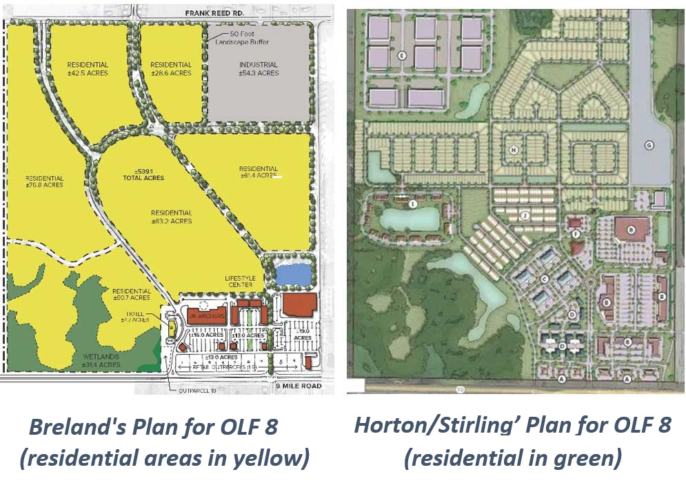 The Horton/Stirling plan remains much more strongly aligned with the agreed upon master plan than does Breland’s—look at initial renderings, side by side, below. Judge for yourself.