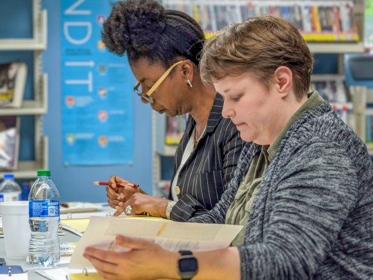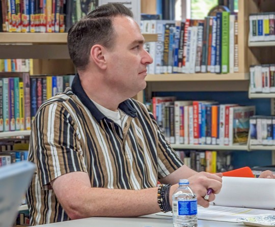 Pictured top: West Florida Public Libraries Director Todd Humble during a Board of Governance meeting Monday afternoon at the Century Branch Library. Pictured first below: Board members Robin Reshard (left) and Liza Campbell. Second photo below: Board member Blaine Wall. NorthEscambia.com photos, click to enlarge.