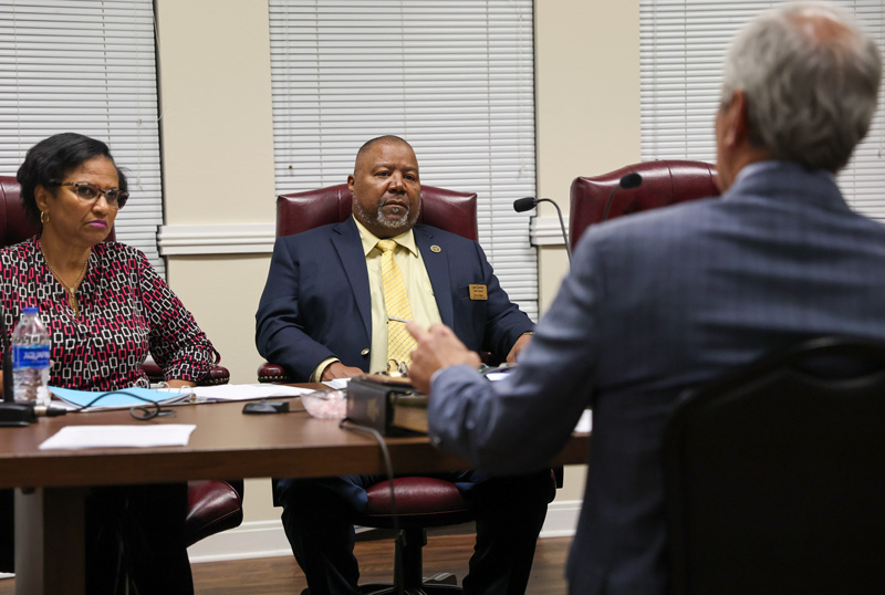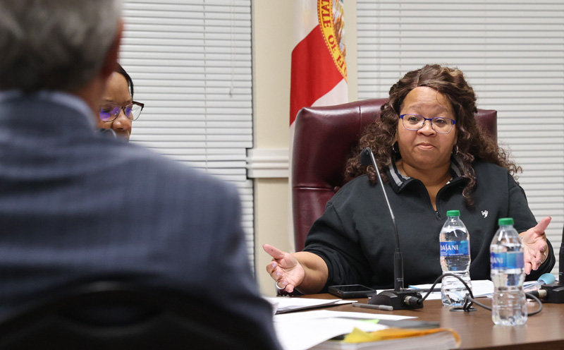 Pictured top: Century council member Shelisa McCall addresses town attorney Matt Dannheisser recently. Pictured inset: Dannheisser explains the charter to the town council. Pictured below: Council member Sandra McMurray-Jackson and council President Luis Gomez, Jr. NorthEscambia.com photos, click to enlarge.