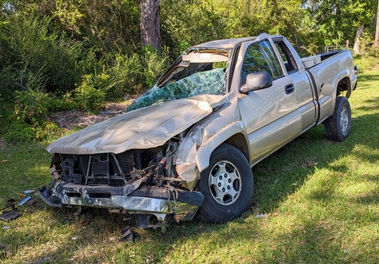 The driver of a Chevrolet Silverado was southbound on North Highway 99 when he apparently lost control as coming out of an S-curve about 3:35 p.m.. The pickup truck left the road, struck a culvert, went airborne and overturned. The pickup came to rest upright in a ditch about 110 feet from the culvert.