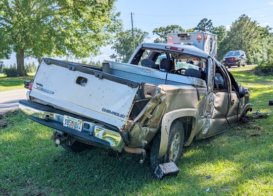 The driver was transported to the hospital by Escambia County EMS with injuries that did not appear life threatening. The Florida Highway Patrol is investigating and has not released additional information.