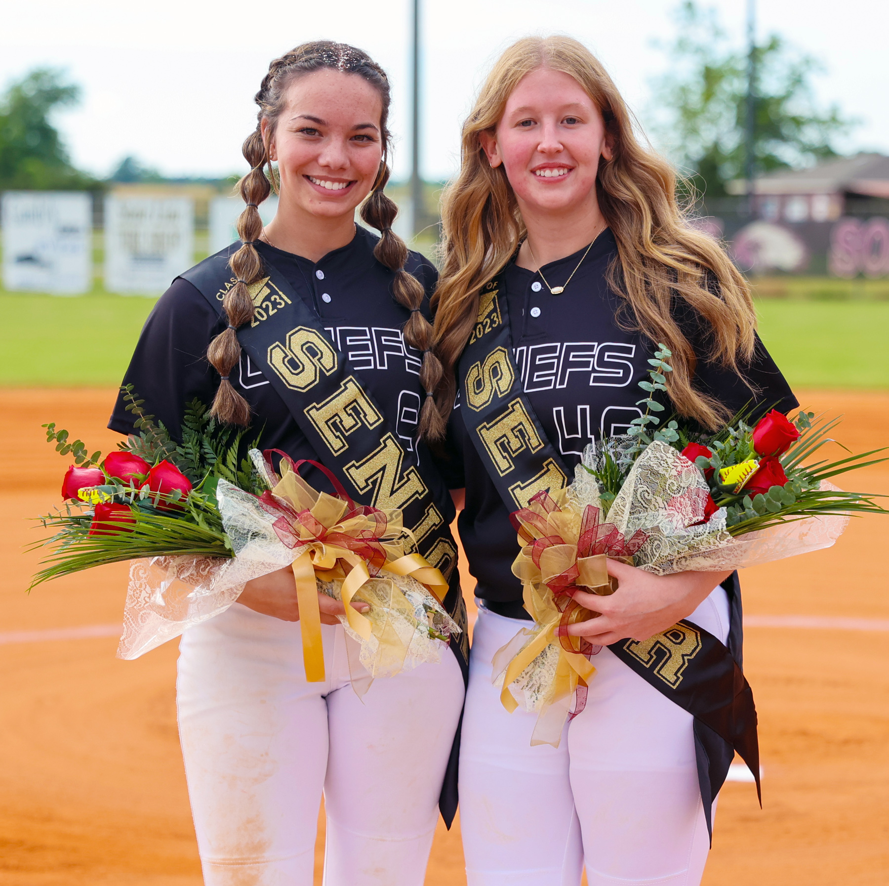 Before the game, the Lady Chiefs honored two seniors — pitchers Emma Gilmore and Aubrey Stuckey. On the first play of the game, Gilmore started at catcher. During her high school career, she had played every position on the field during a game except catcher.
