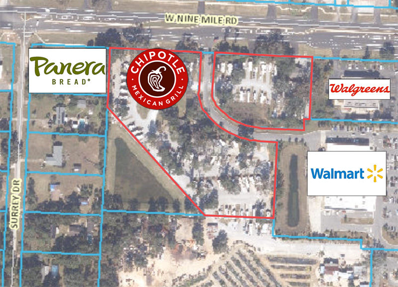 A pre-application meeting will be held Wednesday for a Chipotle at 2261 West Nine Mile Road. The 2,400 square foot fast casual restaurant would be located on just under an acre that is currently part of an RV park. The parking lot access would be to a private driveway that currently connects Nine Mile Road to the rear of a Walmart Neighborhood Market.