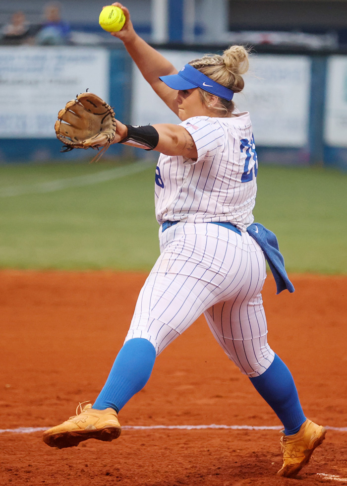 Jenna Toups surrendered two runs and five hits over six innings while walking one and striking out four.
