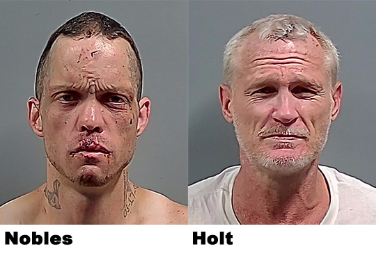 The deputy observed Nobles lose control and crash into a power pole and a large sign at a Cumberland Farms convenience store. Holt was trapped in the passenger seat following the wreck, and Nobles had fled, according to an arrest report. Nobles was located with obvious injuries on the front porch of a home just over a block away in the 3200 block of Moss Point Lane, according to an arrest report.