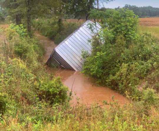 Following the storm, a shed was seen in a ditch on Greenland Road.
