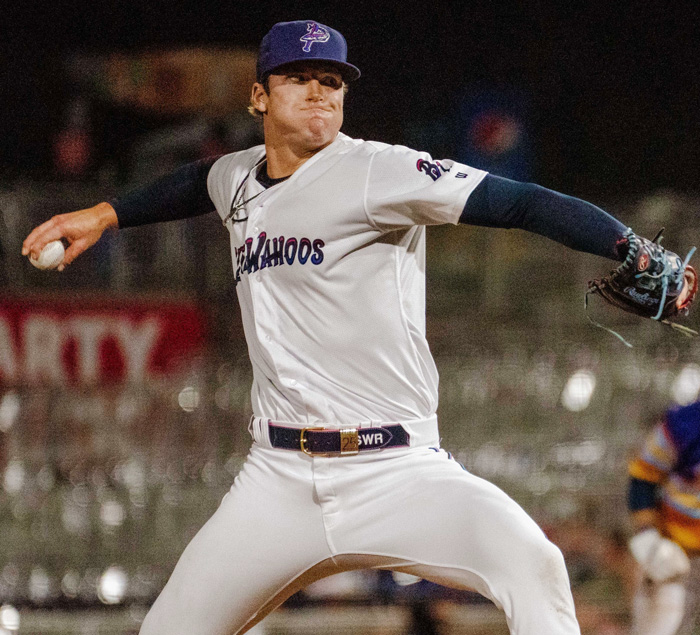 But that 3-2 lead quickly evaporated in the top of the seventh. The Blue Wahoos’ first reliever, Zach Willeman, did not record an out. He hit the first batter he faced, then walked the next two. After Evan Edwards followed with a single, Willeman was pulled for Dylan Bice, who allowed another run, but escaped worse damage.