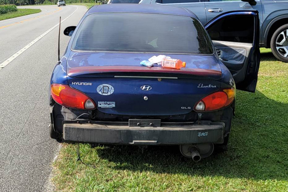 The driver of an older model Hyundai Elantra lost control, ran off the roadway and struck a culvert.