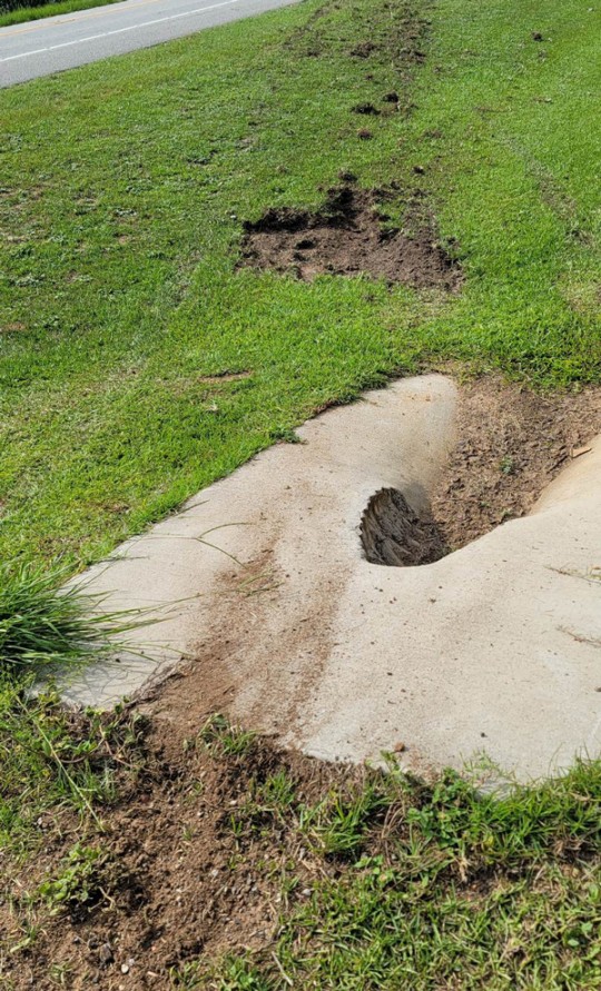 This is a good idea why sloped culvert aprons are a good idea and required in many areas. The damage would have been much more severe without it.