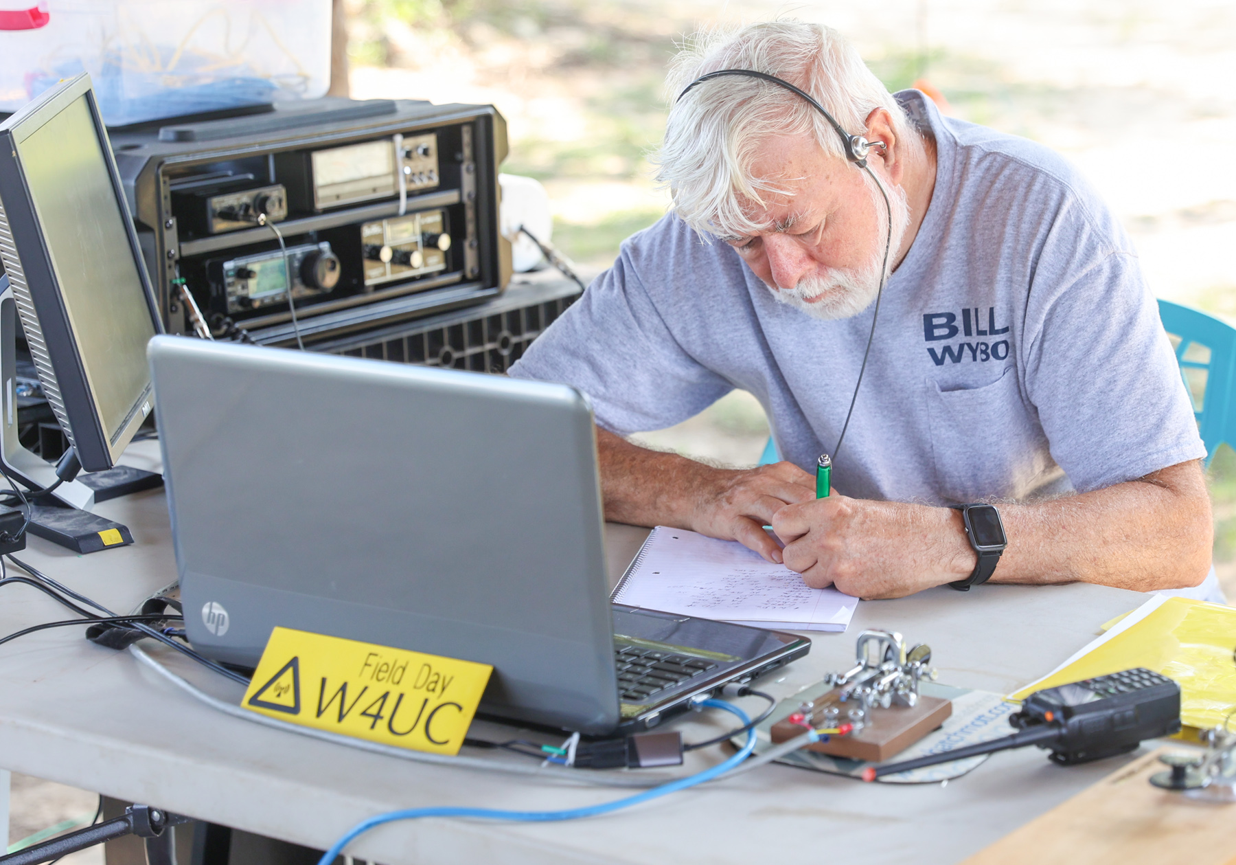 The Southern Amateur Radio Union (SARU) participated from Travis Nelson Park on West Highway 4 in Bratt, near Northview High School. Club members from both Escambia counties (Alabama and Florida) participated from noon Saturday until noon Sunday. The equipment in Bratt was a bit simpler including handheld radios to reach a nearby repeater. Operators would carefully tune radios, repeat their call sign and see who would answer from where.