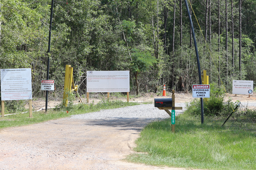 Pictured: The entrance to the Sparkleberry Solar Energy Center as seen Saturday afternoon. NorthEscambia.com photos and graphic, click to enlarge.