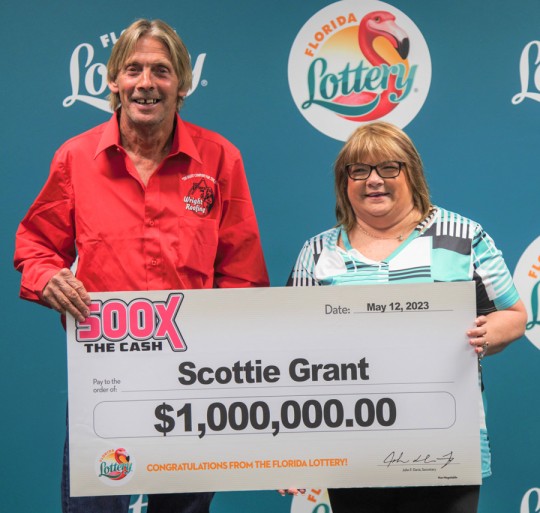 “I’m back!” Grant said, smiling broadly after claiming a second $1 million prize from the 500x The Cash game at Florida Lottery headquarters in Tallahassee. He chose to receive his winnings as a one-time, lump-sum payment of $820,000.