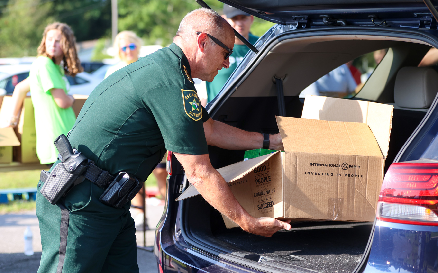Big thanks to Michelle Salzman(and her staff)for coordinating this event once again. Her care and love for HER community can be seen in her actions by doing these distributions. If you think she works hard for us in Tallahassee and Washington you should see her at these Distributions, she works her behind off just like the other volunteers. Also, big thanks to Sheriff Chip Simmons and the rest of OUR ESCO Sheriffs Department for their hard work as well as Commissioner Barry, Momma Bea, Pastor Andy of GUMC and his congregation members who helped, International Paper and it’s employees who helped by supplying the boxes and their work on Saturday and there’s so many more who were instrumental in making sure everything went smoothly, A BIG THANK YOU TO YOU ALL. From a volunteers standpoint, we were greatly BLESSED by being part of HELPING OUR COMMUNITY. Until next time, May OUR GOD BLESS YOU ALL.