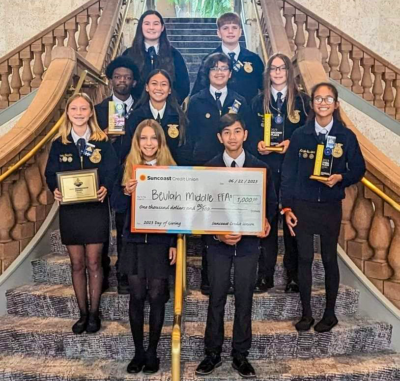 The Beulah Middle School FFA chapter and its members received several honors during the recent Florida FFA State Convention and Expo.