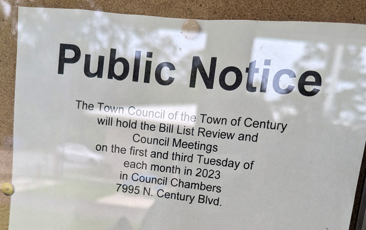 It’s the little details — the Town of Century on Thursday emailed an updated public notice for this year’s town council meetings, eight days after a meeting has halted due to an improper public notice.