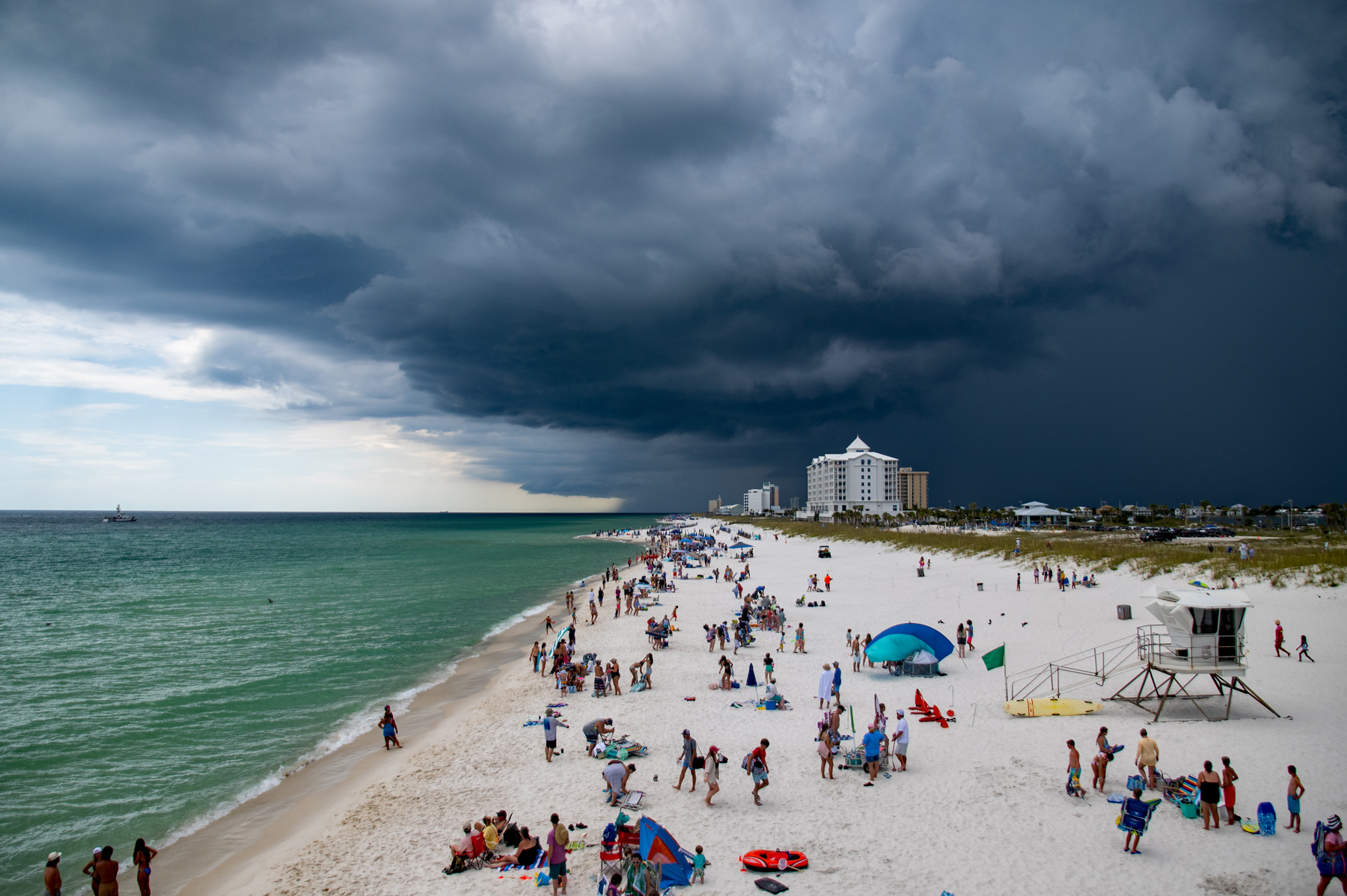 Following Skip Stewart, at approximately 1:05 p.m., there will be a brief 15-minute window for spectators to cool off and take a dip in the Gulf before lifeguards clear the water again.
