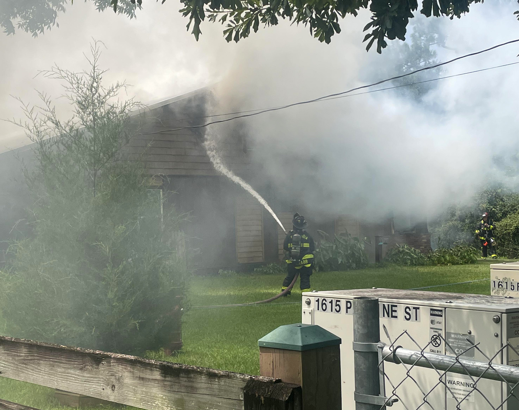 The fire on Pauline Street at the corner of Old Chemstrand Road was reported at 11:12 a.m. Firefighters arrived to find fire showing from the home.