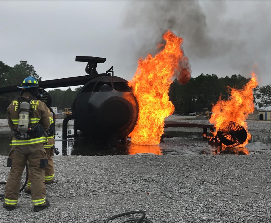 Live fire training will take place at the Pensacola airport through Friday, and visitors may see a mock plane and flames.