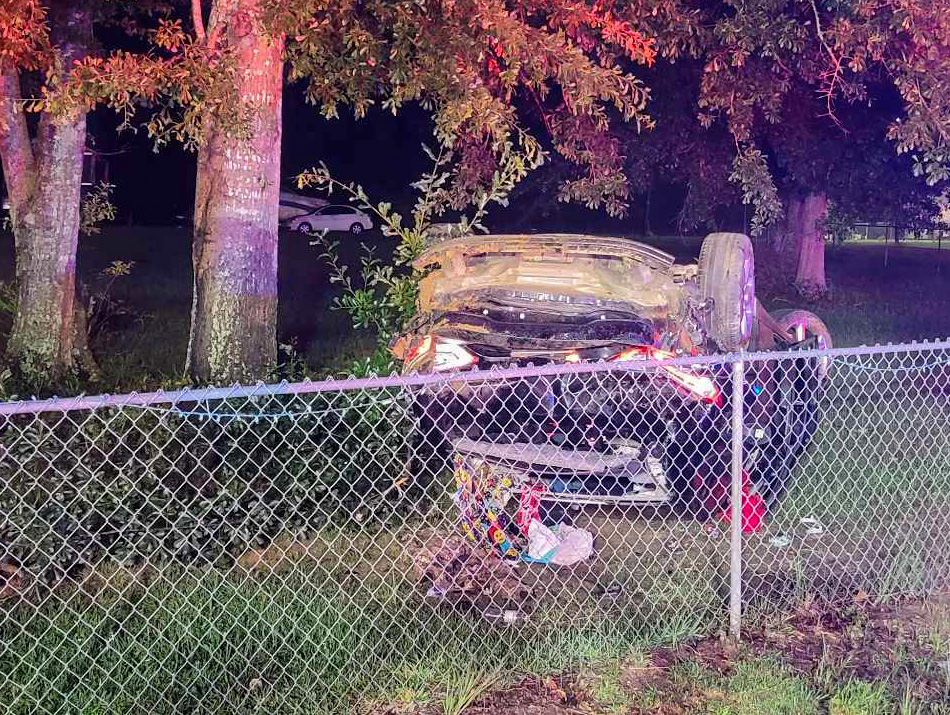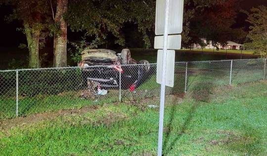 The crash happened about 4:15 on Highway 95A at Joanna Lane, near Highland Baptist Church. The vehicle apparently struck a culvert, went airborne over a chain-link fence, struck a tree about 10 feet off the ground and came to rest upside down inside the fenced-in area.