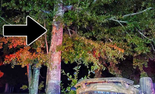 Vehicle Goes Airborne Over Fence And Hits Tree In Molino; One Injured