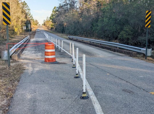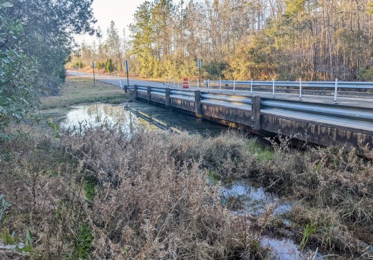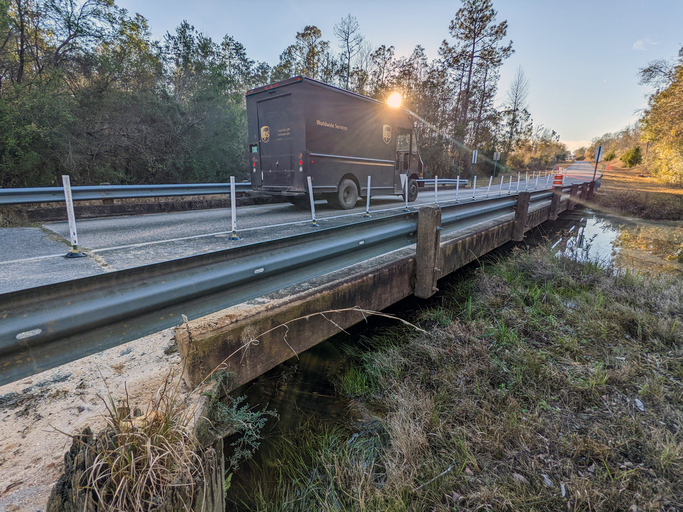 It is a 78-foot wood-supported bridge was constructed in 1959 and is currently beyond its designed service life. It’s also listed as being structural deficient, and there is history of the creek overtopping the bridge. In August 2020, the eastbound lane of the bridge was closed after a failed Florida Department of Transportation inspection.
