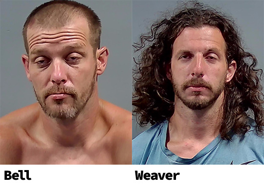The suspects’ 2004 Jeep was parked nearby, and a records check revealed it belonged to Weaver’s fiance. The keys were in Bell’s possession when he was detained.