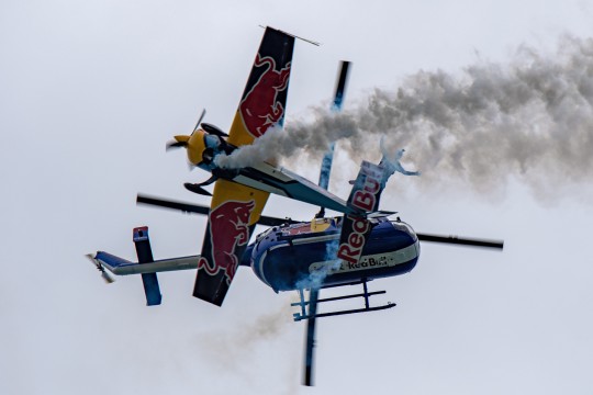 Then, at approximately 1:30 p.m., the Red Bull Air Force team is back again, creating a visual spectacle like no other. Consisting of helicopter pilot Aaron Fitzgerald, aerobatic pilot Kevin Coleman in his Extra 300 SHP plane, and the Red Bull Air Force jump team – the trio will perform a joint aerial demonstration that will last approximately 25 minutes.