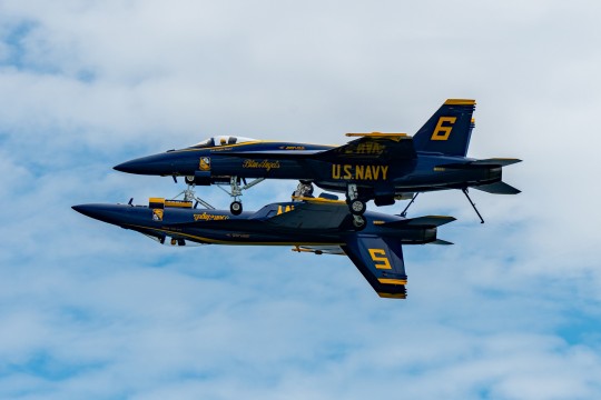 For the next 45 minutes, spectators will get a glimpse of the U.S. Navy Blue Angels aeronautic maneuvers like the Diamond Dirty Loop, the Double Farvel, the Vertical Pitch, the Fleur-de-Lis, the Opposing Knife-Edge pass, and the crowd-favorite Sneak Pass. These are just a few of the mind-blowing displays of choreographed precision flying the Navy’s flight demonstration team, and our hometown heroes, has perfected over the past 77 years.