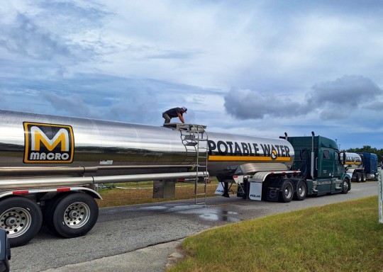 Macro Companies of Broussard, LA, reached out to the ECUA Tuesday, looking for a water supplier willing to provide thousands of gallons of potable water destined for the Big Bend area. Within a few hours, Bill McElligott, vice-president of Macro Companies and Robert Rogers, ECUA Water & SCADA Operations Manager had a plan in place.