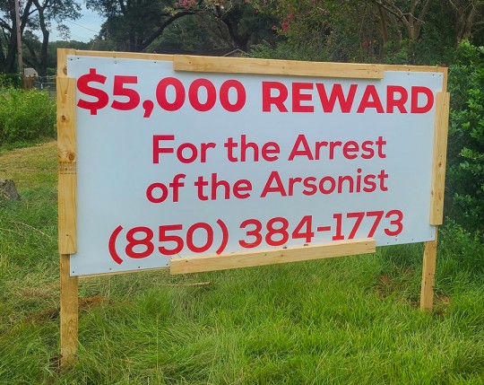 His son, John Henry Wilkes Justice, is offering a $5,000 reward for “the arrest of the arsonist” that he believes started the fire.