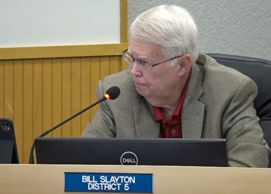 Pictured: Escambia County School Board District 5 member Bill Slayton makes a millage motion during a special meeting Tuesday. Photo for NorthEscambia.com, click to enlarge.