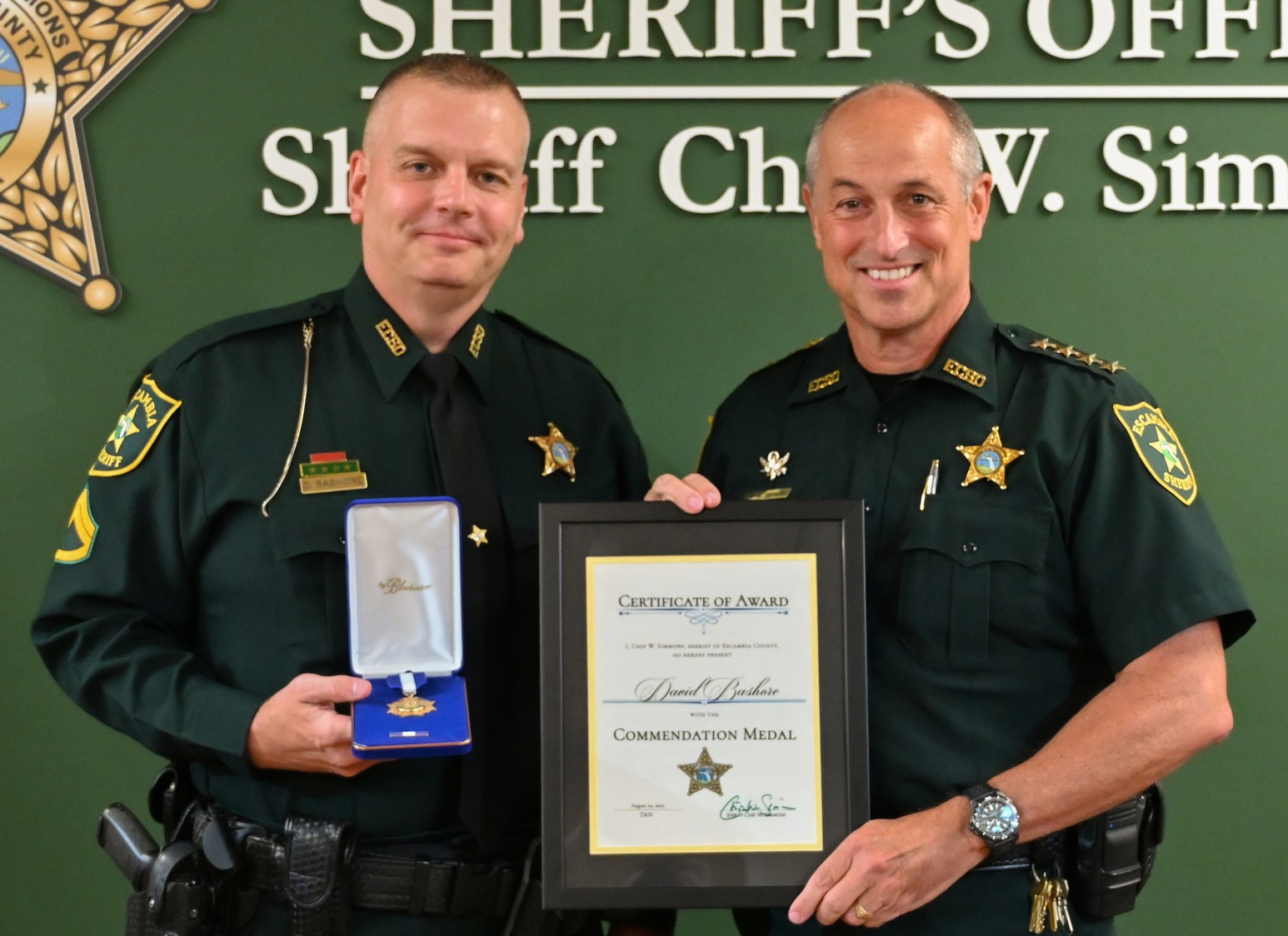 Investigator Dave Bashore was presented the Commendation Medal award. Investigator Bashore’s exemplary work and commitment to the Sexual Offender/Predator unit have played a crucial role in maintaining public safety in Escambia County.
