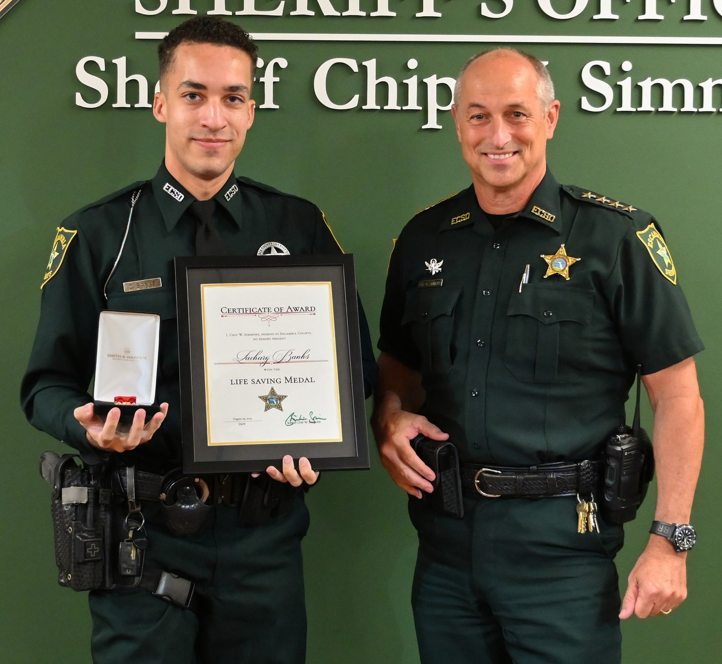 Deputy Zachary Banks was presented the Life Saving Medal award. In May of 2023, after his shift, Deputy Banks assisted the Pensacola Police during a house fire. He helped rescue a trapped child and began immediate life-saving efforts.