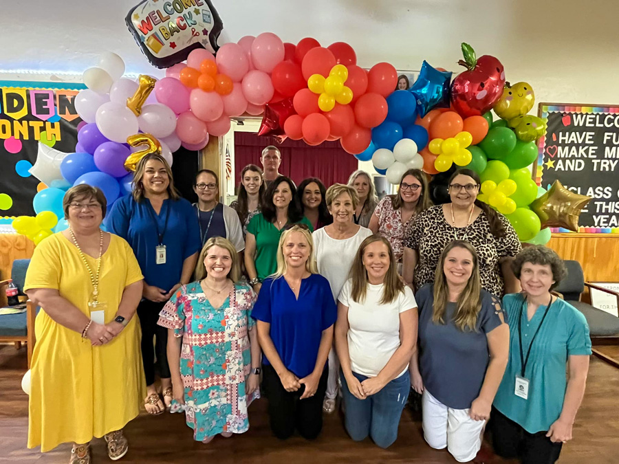 Thursday is the first day of school in Escambia County. Drivers are reminded to use extra caution in school zones and be aware of school buses back on the roadways. Pictured: Teachers and staff at Byrneville Elementary School ready ready to welcome students back to class. Photo for NorthEscambia.com, click to enlarge.