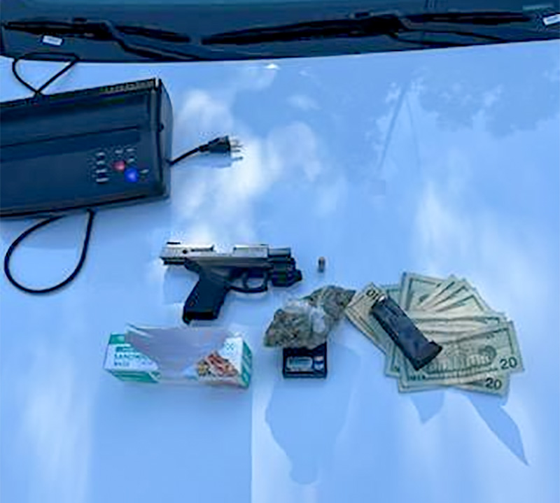 During a probable cause vehicle search, deputies reported finding a loaded .40 caliber handgun, 34.3 grams of marijuana, $270 in small denominations, digital scale, sandwich bags and a digital copier.
