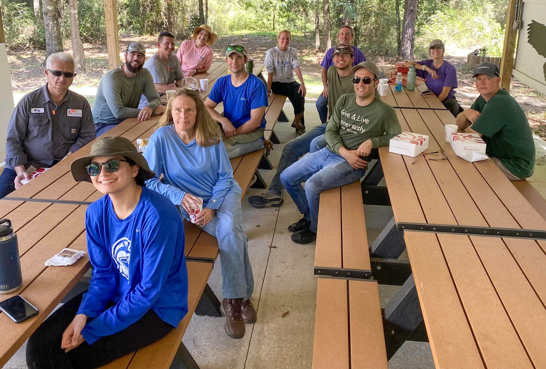 The group worked to help the facility get ready for upcoming student field trip visitors. They worked to clear trails, clean debris from ponds, trim the turtle enclosures, powerwash picnic tables and pavilions, repair equipment and more.