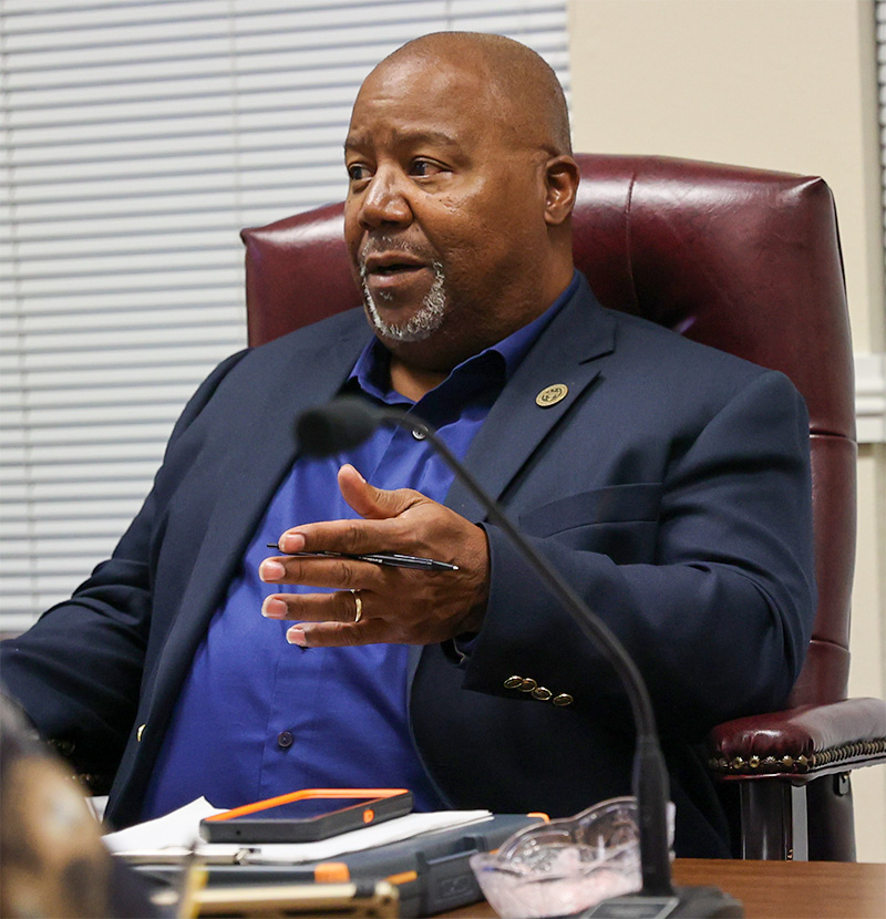 Pictured top: Council president Luis Gomez, Jr., now presumably acting mayor in Century, during a budget workshop Tuesday evening, August 22. Pictured below: Now resigned mayor Ben Boutwell during an August 15 meeting. NorthEscambia.com photos, click to enlarge.