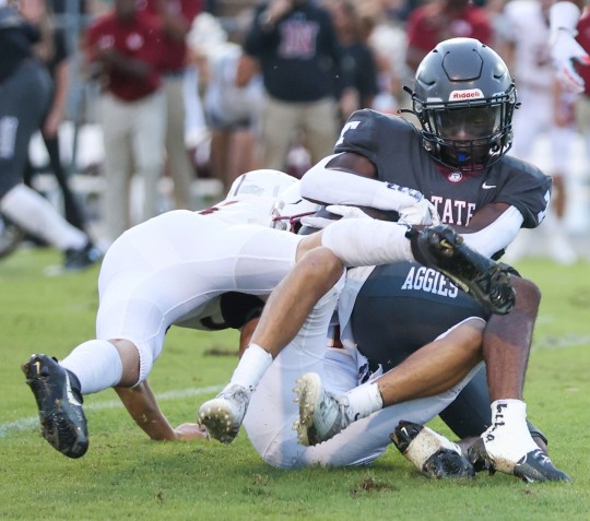Senior Andre Colston put the Aggies on the board 7-0 with 7:41 in the first on a 20-yard touchdown run. Still in the first, quarterback Taite Davis found Christian Neptune on a 74-yard touchdown play, 14-0. To round out the first, the Aggies did again, this time Davis to Neptune for a 30-yard TD.