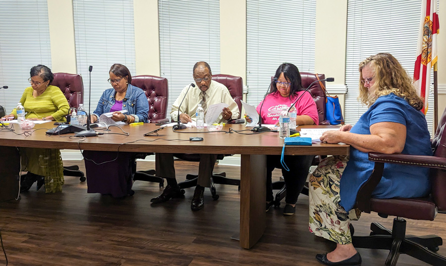 Pictured top: Century Council president Dynette Lewis reviews the mayor’s budget Tuesday evening. Pictured below: A Century millage rate hearing. Pictured inset: No member of the public attended the meeting. NorthEscambia.com photos, click to enlarge.