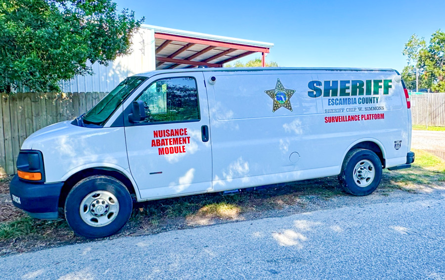 The Escambia County Sheriff’s Office has repurposed an aging van with over 200,000 miles as their new “Nuisance Abatement Module”.