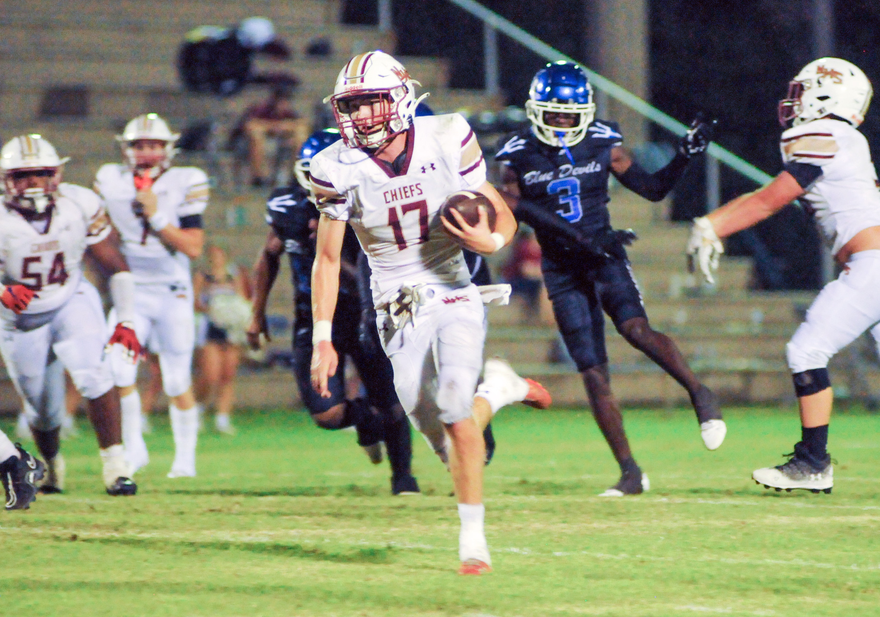 Down 14-0, the Chiefs had a 27-yard run by Devin Kelly to make it 14-7. In the third quarter, Northview tied it up at 14-14 with a 30-yard touchdown run from Wyatt Scruggs, but the Blue Devils then added a dozen unanswered points.