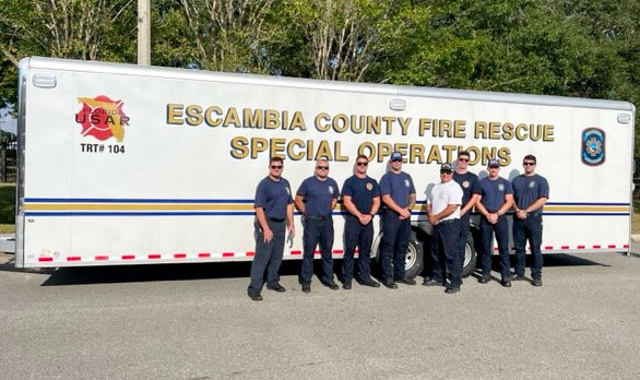 Members of the Escambia County Fire Rescue Light Technical Rescue Team deployed Wednesday to Madison, Florida, to assist with rescue efforts in the aftermath of Hurricane Idalia. ECFR’s crew will spend up to 14 days performing search and rescue operations.