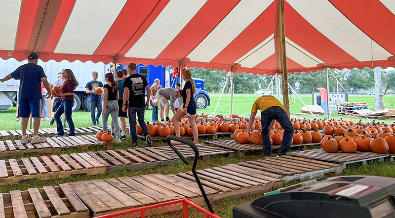 Thursday, the Northview High School NJROTC helped unload 38,000 pounds — 19 tons — of pumpkins under the big tent on Highway 29 near Neal Road.